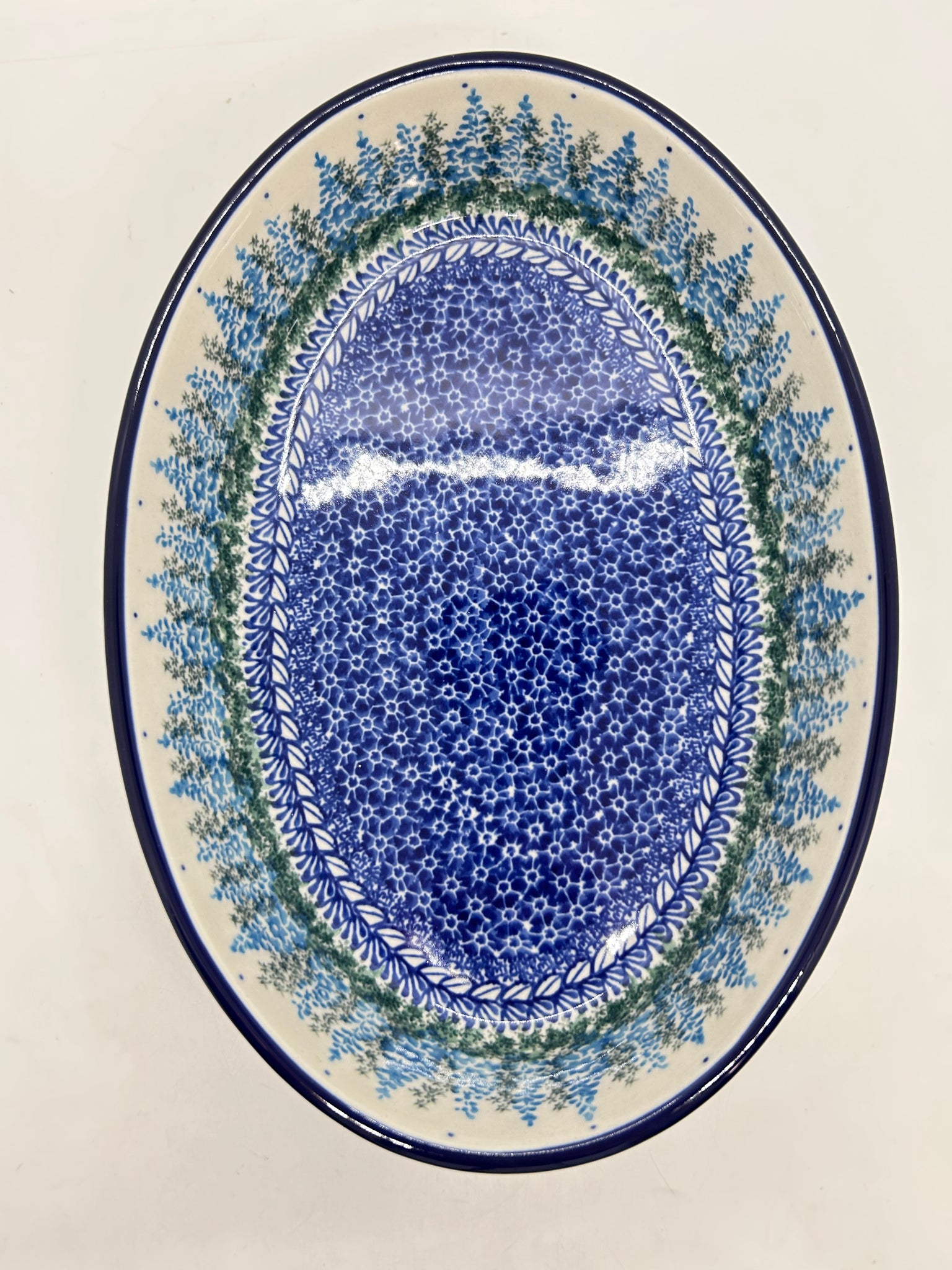 10.5"x7.5"x2.25". Wonderful family style baker. Oven, Dishwasher, Microwave and Freezer Safe. Made by Ceramika Arystyczna