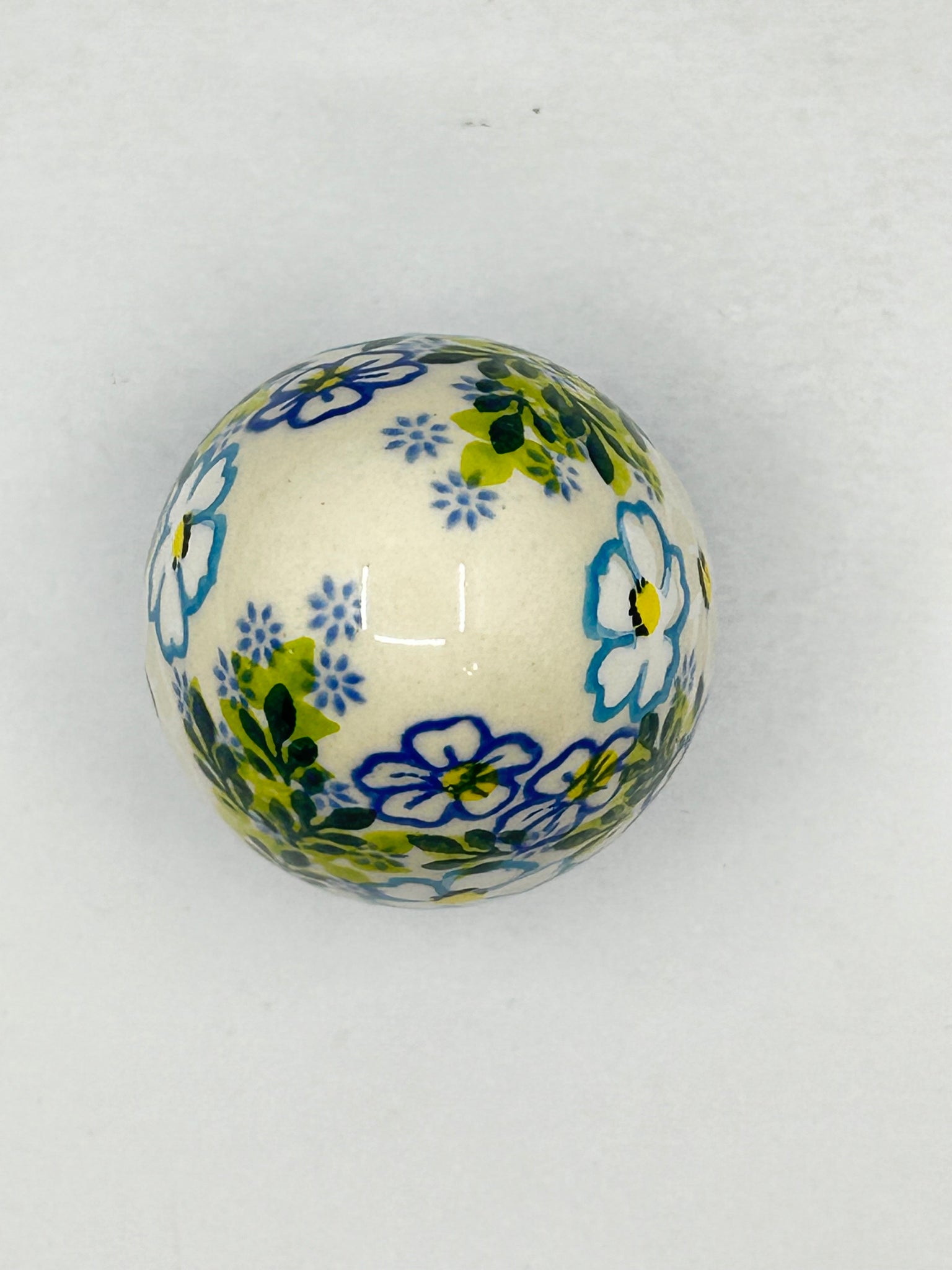 Kalich Stoneware Egg - White and Aqua Flower - Unikat