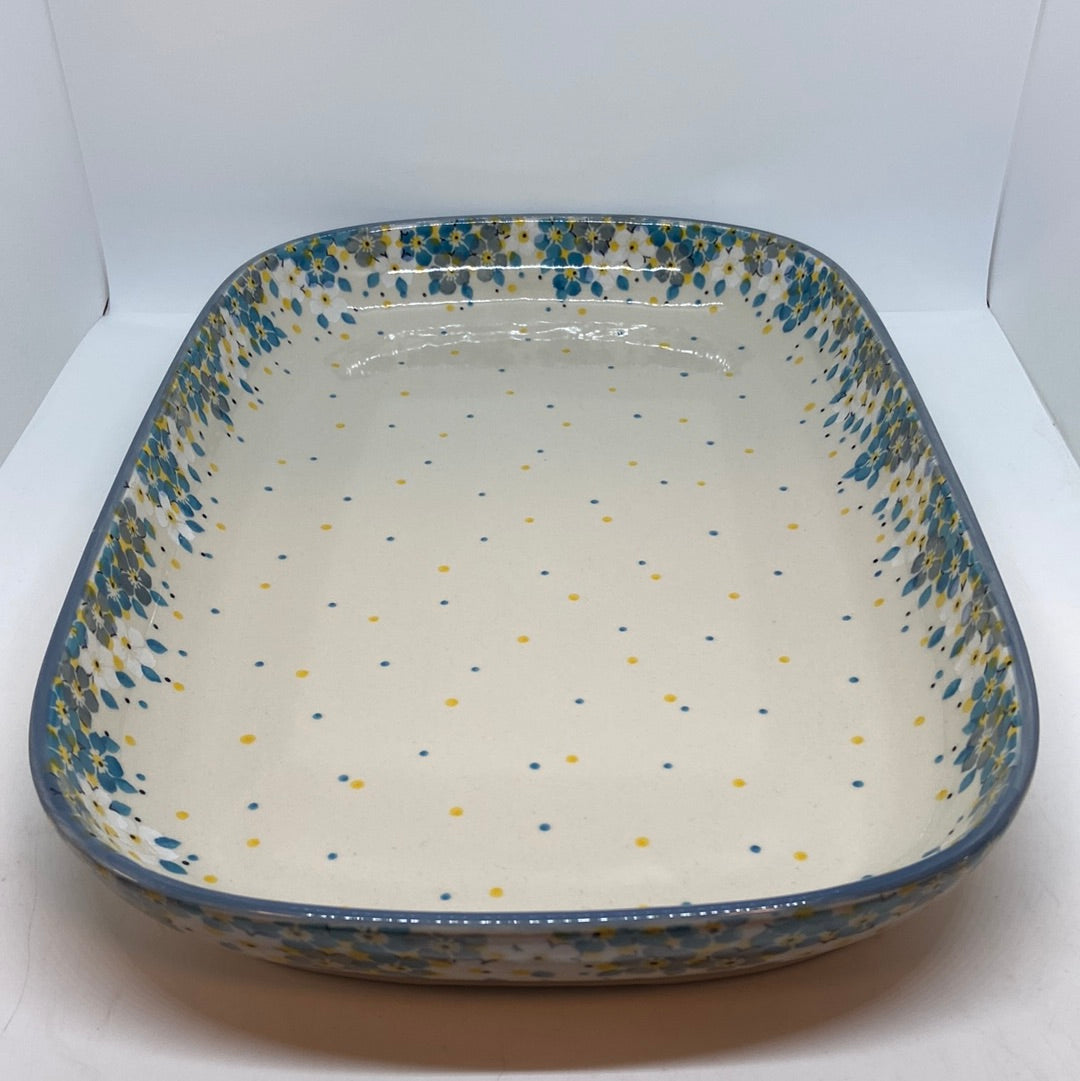 16"L x 10"W x 1.5"H. Awesome for breakfast in bed, or for a grilling tray! Cook or Serve. Oven, Dishwasher, Microwave and Freezer Safe. Made by Ceramika Artystyczna.